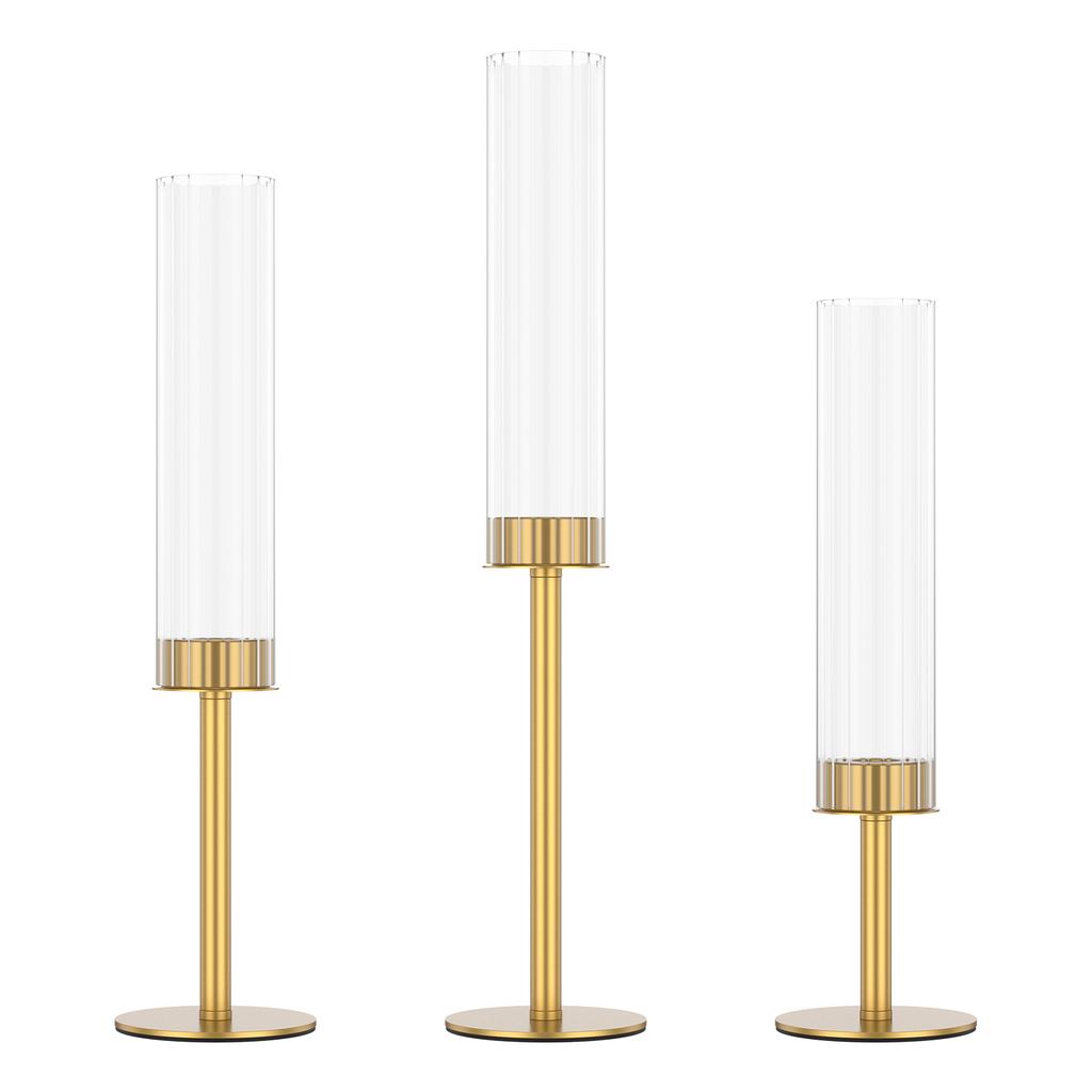 3Pcs Candlestick Holder Hurricane Candle Holder with Ribbed Glass Cylinder Windproof Tall Candlestick Holder for Table Fireplace