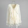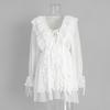 Chiffon Long-sleeved Dress European and American Spring New Lantern Sleeve Lace-up Short Skirt Ruffle Leaf Edge Dress