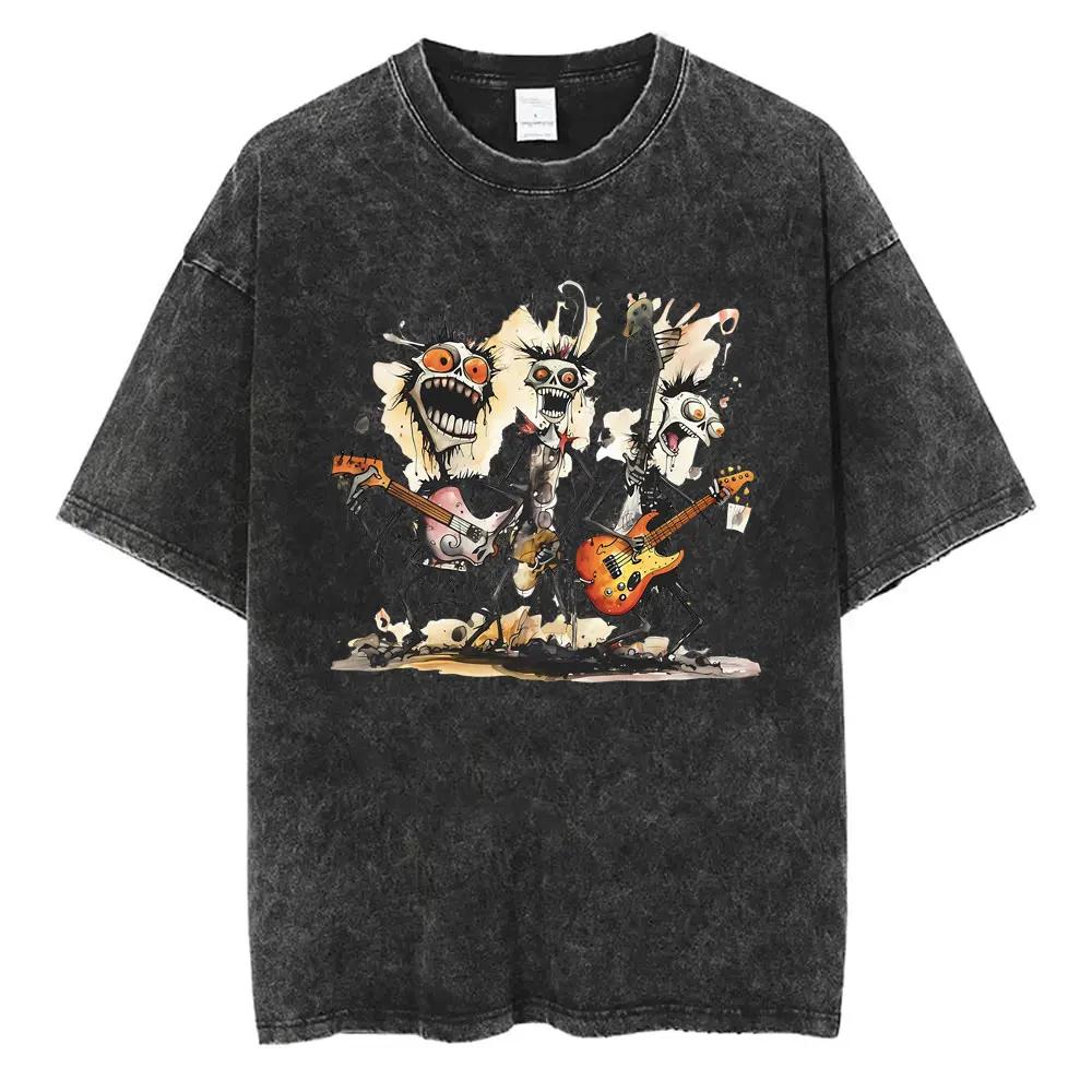 Washed Vintage Rat Parent Funny Meme Artwork Band Ghost T-shirts Men Classic Metal Rock T Shirts Male Fashion Oversized Tshirt