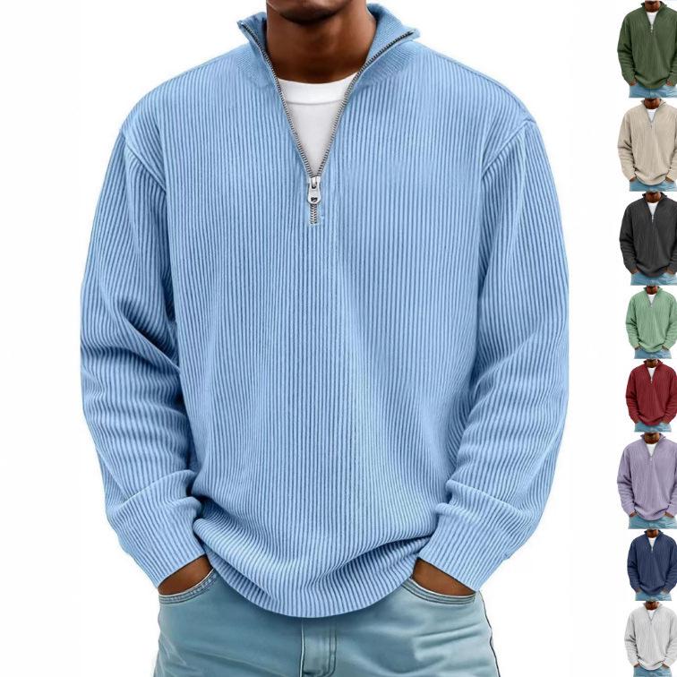 2025 Autumn Men's Corduroy Long-Sleeve Polo Shirt with Stand-Up Collar and Zipper