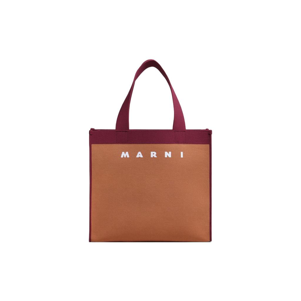 Marni Logo Print Color Block Design Tote Bag Women Tote Bags Brown Purple SHMP0076A2P4602ZO196