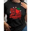 Women's Strawberry Print Short-Sleeve T-Shirt - Soft Breathable Summer Blouse with Strawberry Graphic, Casual Round Neck T-Shirt Suitable for Spring