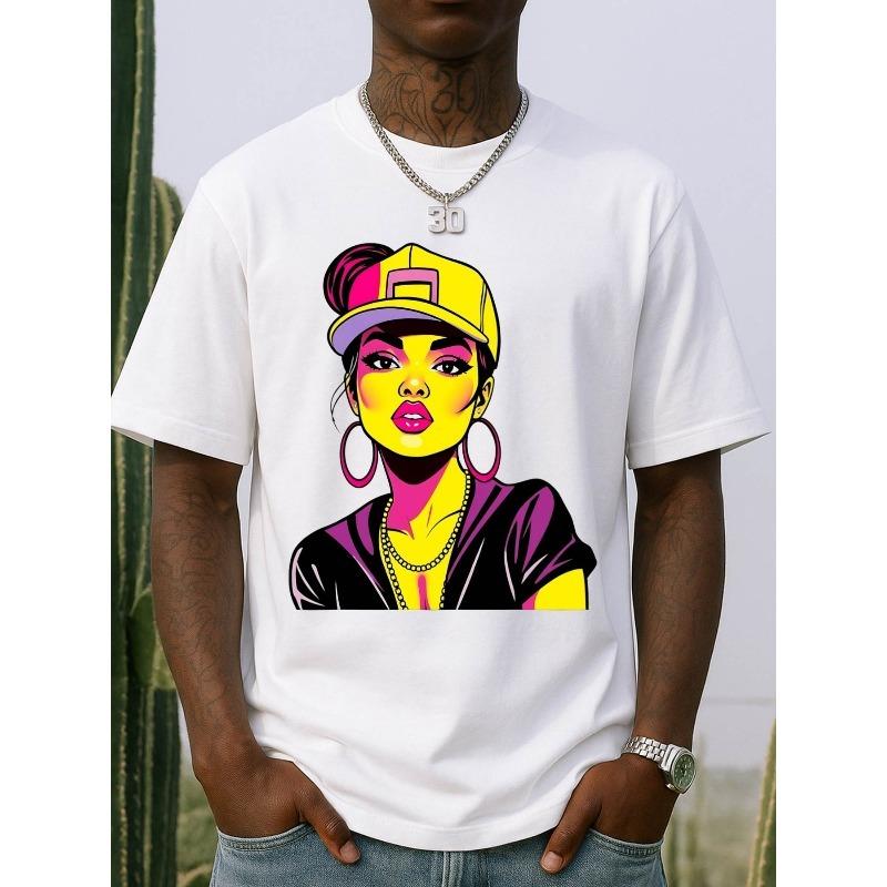 European Sizes Men'S Graffiti Graphic T-Shirt - White with Black & Yellow Urban Streetwear Design, Round Neck Short Sleeve Casual Tee