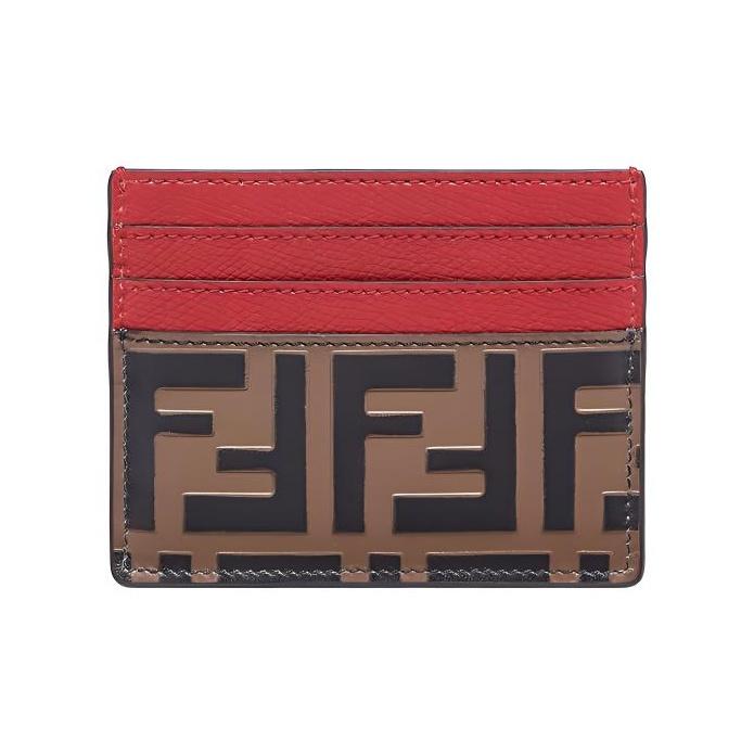 Fendi F Is Gold Logo FF Pattern Embossed Leather Card Holder Women Accessories Red 8M0445AAIIF13VJ