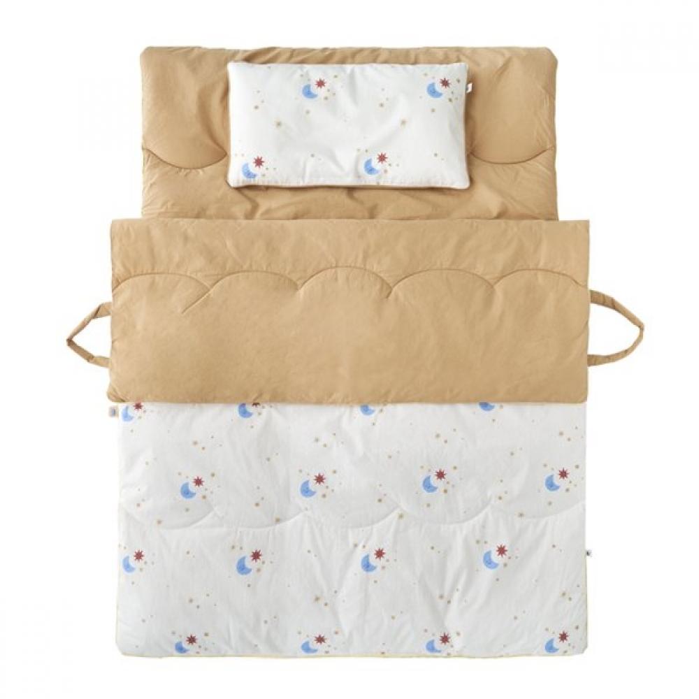 The Petite Palette Mesh Nap Set 35W70-ABS is a nap bedding set made of 100% durable and soft washed cotton fabric. It features the Apéfef signature pattern and a retro solid color match, comprising a comforter, mattress pad, and pillow as an all-in-one product. It is designed for easy use by children, with an 8-ounce pad and a 3-ounce padding incorporated. The cloud-like scalloped quilting adds a touch of whimsy and coziness.
