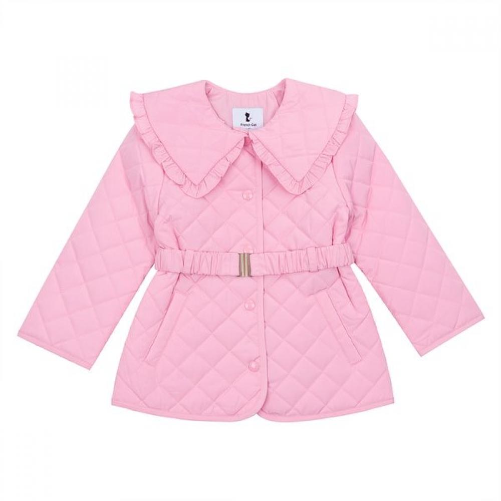 The PK Big Collar Quilted JK is a unique quilted jacket featuring a pink big collar design. Notable for its drop-shaped quilting pattern, it includes a waist belt for versatile styling. It's a lovely winter item ideal for staying warm in the chilly early spring weather.