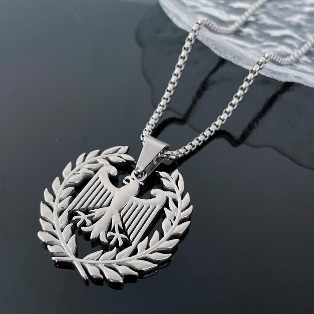 New German Eagle Arms Flag Pendant Necklace for Men Women Stainless Steel Germany Patriotic Jewelry Accessories Gifts