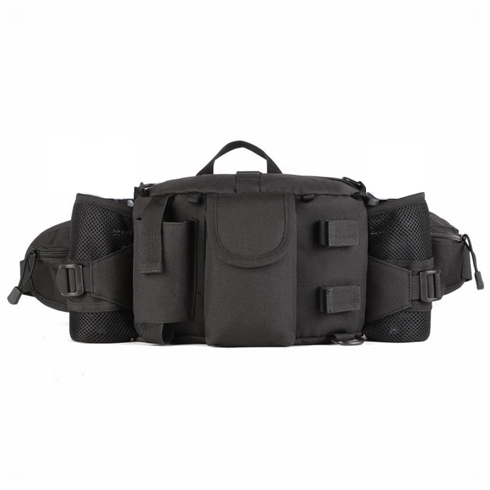 Structure: Two Velcro open pockets on the front, two water bottle pouches on each side, two zippered pockets on the belt, and one main pocket and one zippered pocket inside. The numerous pockets provide ample storage, allowing you to perfectly organize and access all your small items, including your phone, smartphone, wallet, keys, pens, notepad, tissues, and cigarettes. It's also incredibly convenient, with a 3-way design that allows it to be used as a waist bag, crossbody bag, or handbag.