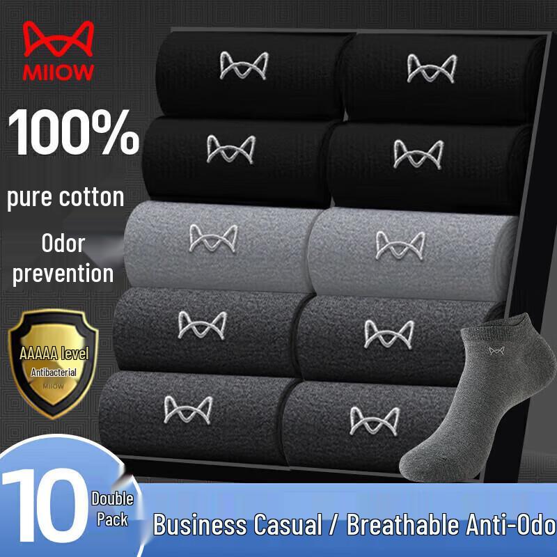 MaoRen Men's Antibacterial Pure Cotton Ankle Socks, 10-Pack