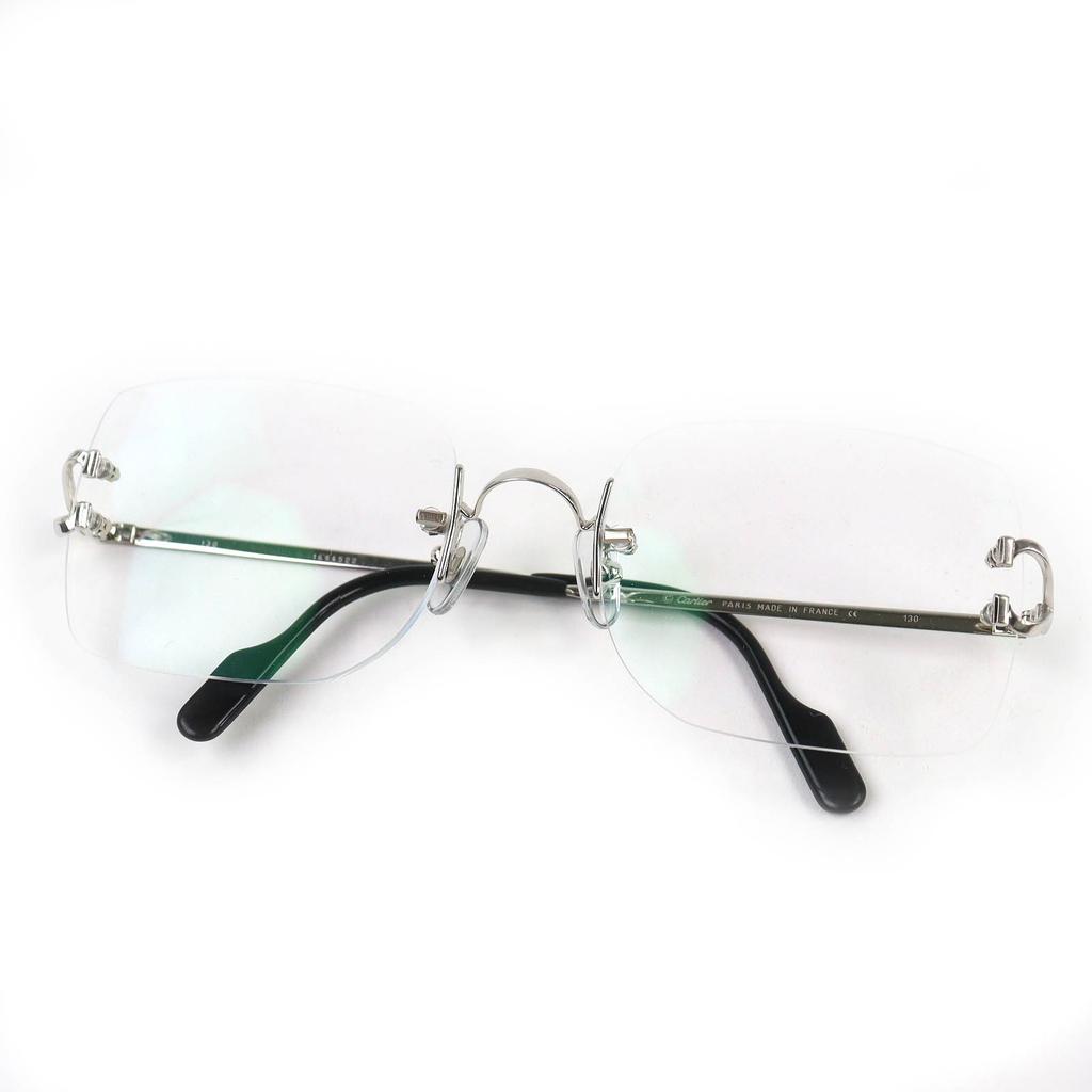Excellent Cartier Glasses Square Two-Point Rimless Silver Mens Used