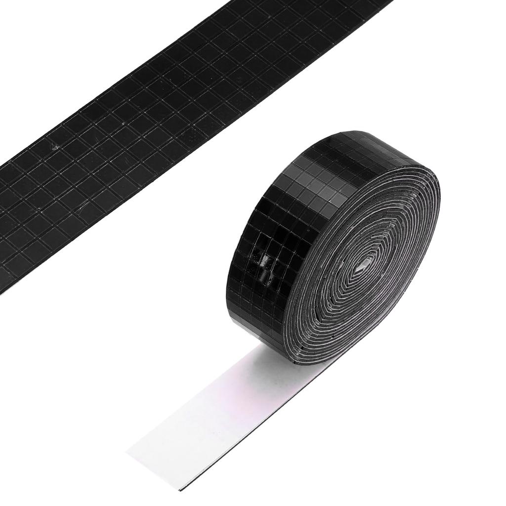 These mirror mosaic tiles can be used for DIY disco balls and craft projects like vases, cups, mirrors, photo frames, and hats. They can be used in bathrooms, kitchens, bedrooms, dance studios, walls, ceilings, and floors, and are perfect for birthdays, weddings, and theme parties, adding a festive atmosphere. Specifications: Color: Black; Material: Glass; Size: 360x2.5cm/141.73x0.98in (LxW); Thickness: 1.1mm/0.04in; Single Tile Size: 5x5mm/0.2x0.2in; Packing List: 3600 pieces x self-adhesive mirror mosaic tiles (1 roll).