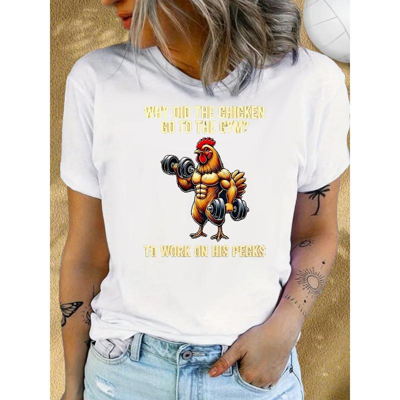 European Sizes Muscle Chicken Joke T-Shirt | Street Trending Style, Casual Tee, Comfortable Round Neck, Short Sleeves