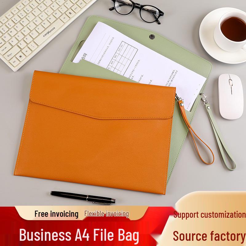 A4 Waterproof PU Leather Briefcase with Snap Closure for Office Documents, Custom Logo Available