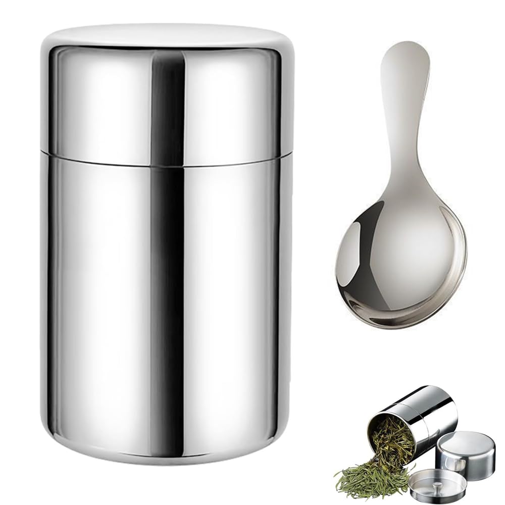 YFFSFDC Stainless Steel Tea Tea Tea Keeps Tea Storage Container for Tea Black 400ml with Round Teaspoon Caddy, Canister, Caddy, Airtight, Fresh,