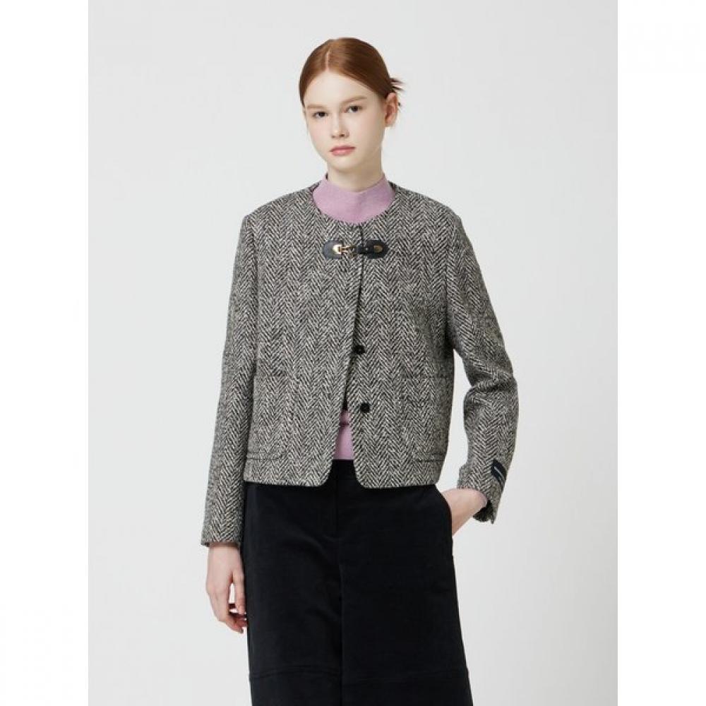 The Round Neck Buckle Decor Tweed Jacket is made from high-quality imported Italian material. It features leather buckle decoration at the front closure, providing a clean silhouette with its modern round neck design. Additionally, the hidden snap closure and the outer pockets add practicality. This stylish item conveys a unique mood through its tweed jacket style.