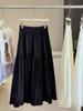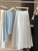 Women's A-line White Cake Skirt with Bowknot and Wood Ear Edge, Spring 2026 Collection - Mid-length, Loose, Slimming, Large Hem.