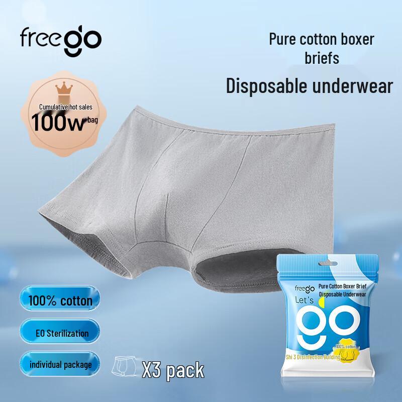 Freego Men's Disposable Cotton Boxer Briefs 3-Pack