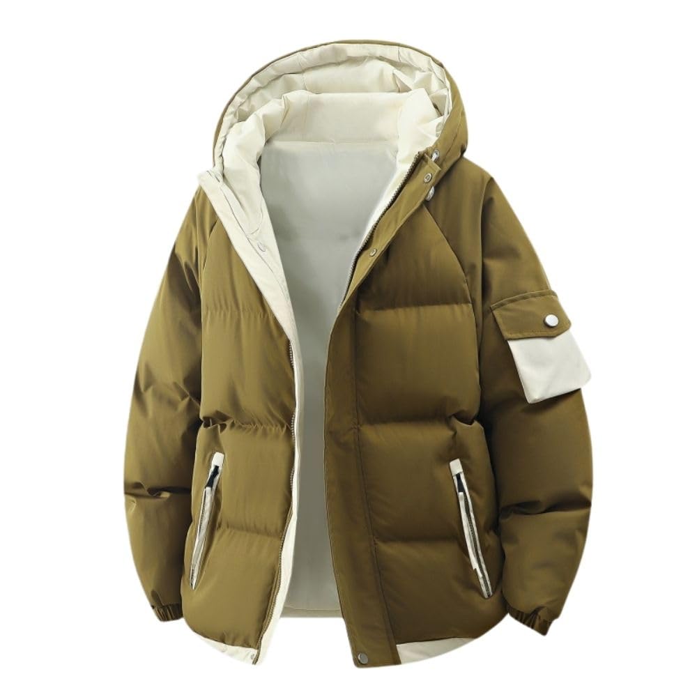 foxseon Down Mod Padded and Casual Winter Men's Jacket, Coat, Hooded, Thick, Cold-Weather Coat, Windproof, Warm, Outerwear, Unisex, Jumper, Green-L