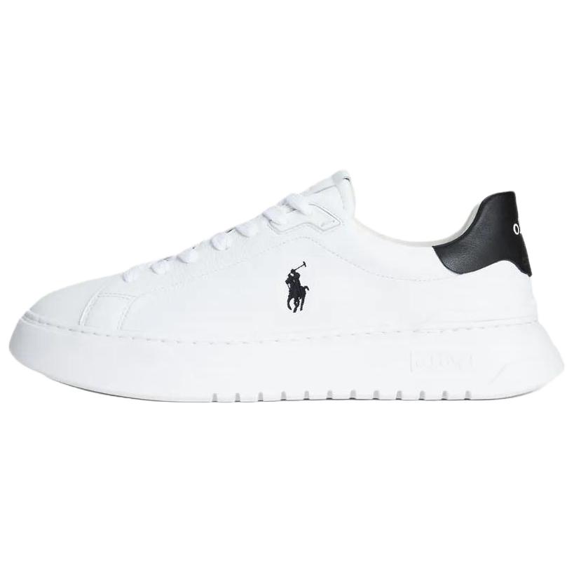 Polo Ralph Lauren Rlite Court Floral Leather Round Toe Lace-Up Low-Top Sneakers Men Sneakers White Black 809974097002