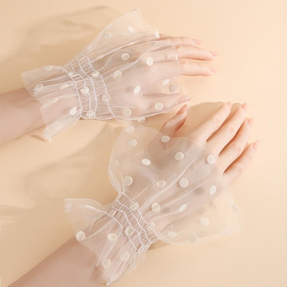Pleated Tulle Flare Sleeve Elastic Detachable Wristband Polka Dot Fake Cuffs Wedding Dress