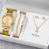 iF ME 6PCS/Set Women's Watch Fashion Steel Band Analog Quartz Watches Jewelry Set Suitable Gifts for Family and Friends (Without Box)