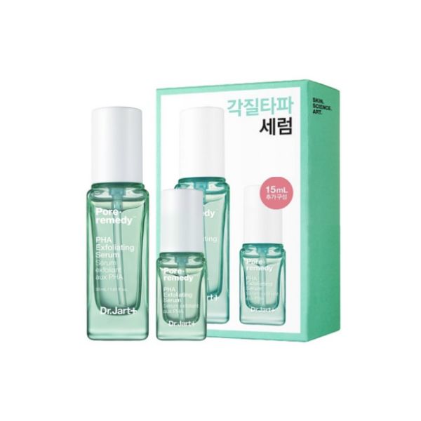 Dr. Jart+ Pore Remedy PHA Exfoliating Serum Set is a skincare duo designed to gently exfoliate and refine the appearance of pores. Formulated with PHA and skin-conditioning ingredients, the serum helps remove dead skin cells while maintaining moisture balance. The lightweight texture absorbs smoothly, improving skin clarity and texture over time. This set offers convenient pore care and skin-smoothing treatment for a clearer, healthier-looking complexion.
