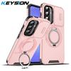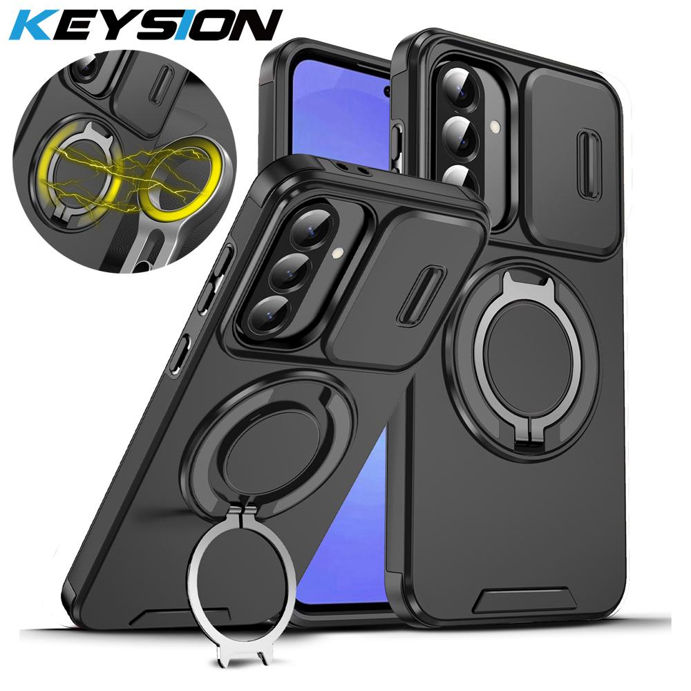 KEYSION 360° Ring Stand Phone Case for Samsung A56 5G A36 A26 5G Slide Camera Protection Magnetic Shockproof Cover for Galaxy A16 4G 5G