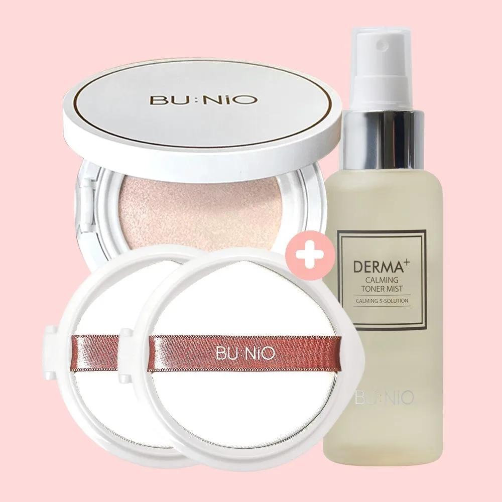 BU:NiO Bare Face Cushion Set (Calming Cool Tone-Up Sun Cushion Main Product 25g + Refill 25g X 2 + Calming Toner Mist 100ml)
