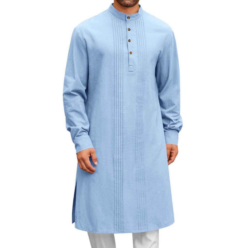 Arabic Style Fashion Simple Long Length Mens Shirt Muslim Robe Thobe Comfortable Soft Fabric Traditional Islamic Clothing Daily Prayer Casual Wear