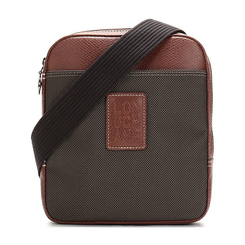 Longchamp Boxford 19 Zipper Logo Adjustable Shoulder Strap Leather Trim Crossbody Bag Small Men Crossbody Bag Brown 1712080042