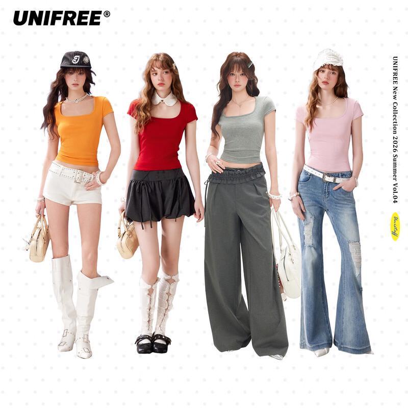 unifree 2026 Summer Street Chic Slim-Fit Square Neck T-Shirt