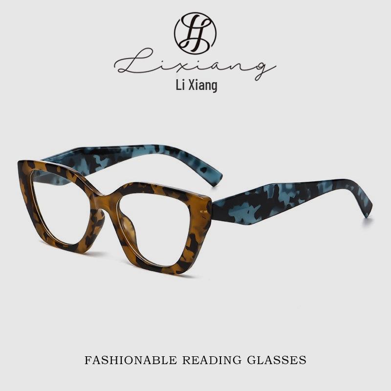 Women's Retro Leopard Print Presbyopia Glasses with Floral Eyeglass Frames - Fashionable Large Frames for Middle-Aged & Elderly.