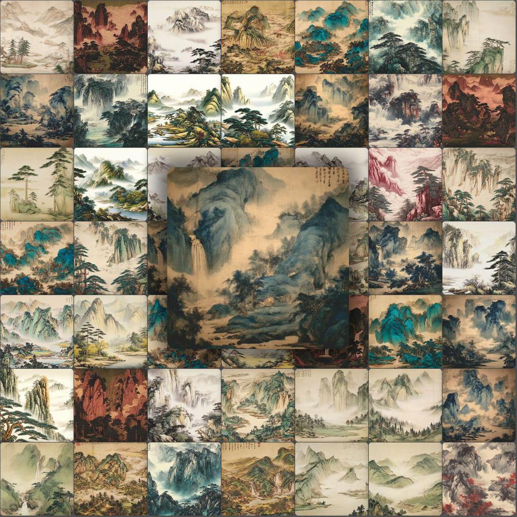 50-Sheet Set of Traditional Chinese Landscape Ink Wash Stickers: Cultural and Creative Decor for Journals, Water Bottles, and Laptops
