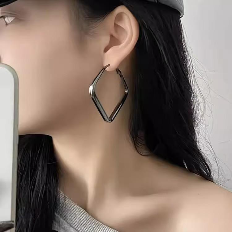 Gunmetal Large Square Hoop Earrings - European & American High-End Fashion, Exaggerated Style for Square and Round Face Slimming.