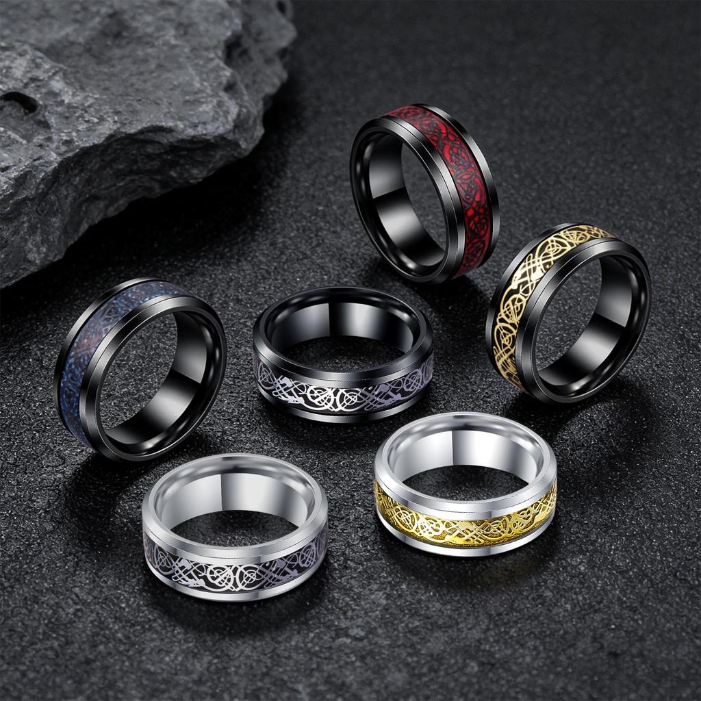 8mm Men's Stainless Steel Celtic Dragon Black Wedding Ring Set