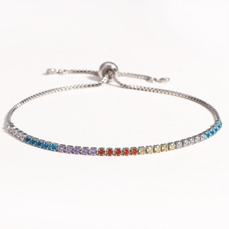18K Gold Plated Rainbow CZ Tennis Bracelet – Luxury Colorful Gemstone Jewelry, Sparkle Gift for Women
