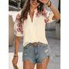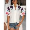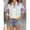 Women's Fashion Casual Summer Spring Flower Pattern Print Short Sleeve V-Neck Blouses Shirts