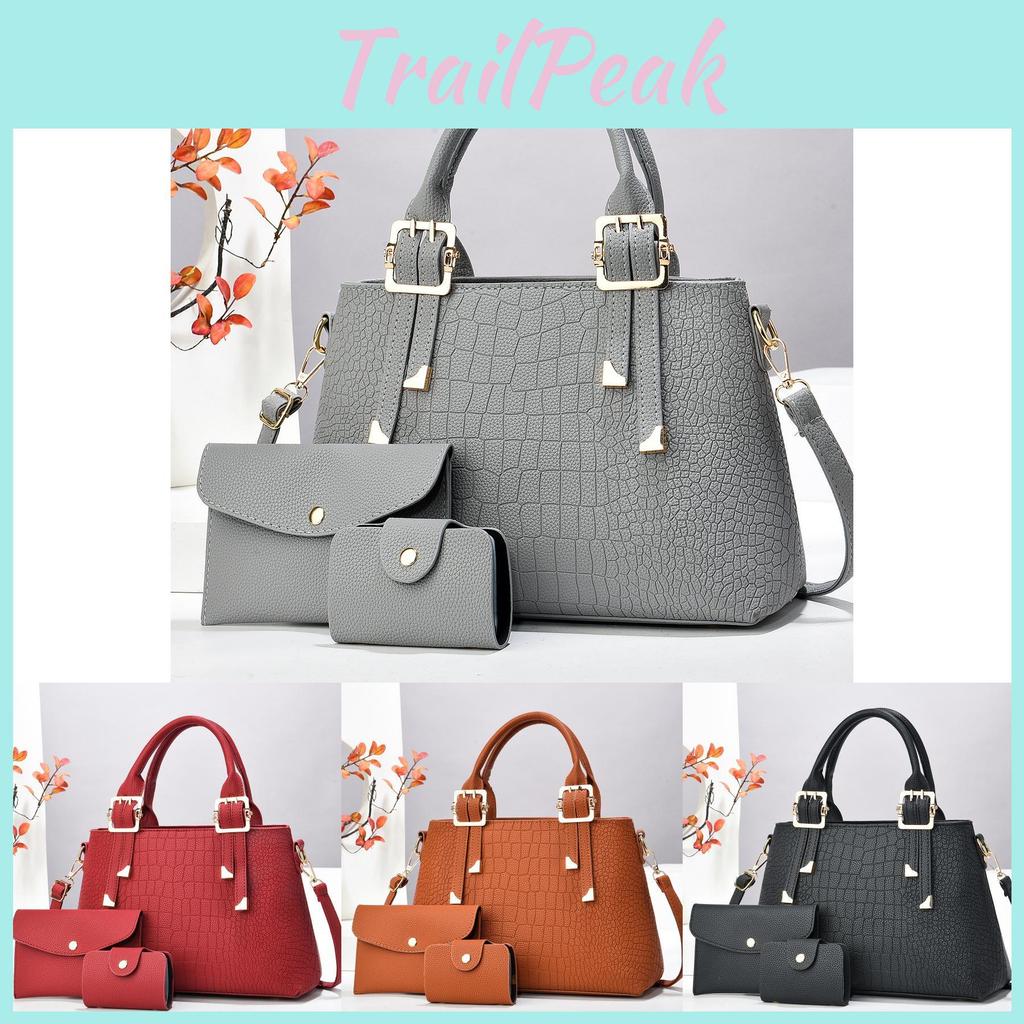 This three-piece set includes a matching wristlet and a crossbody bag, providing versatile options for various occasions. Whether you're heading to the office, meeting friends for brunch, or enjoying a day out shopping, you can mix and match these bags to suit your needs. The single shoulder strap adds comfort and ease of use, making it effortless to carry throughout your busy day.