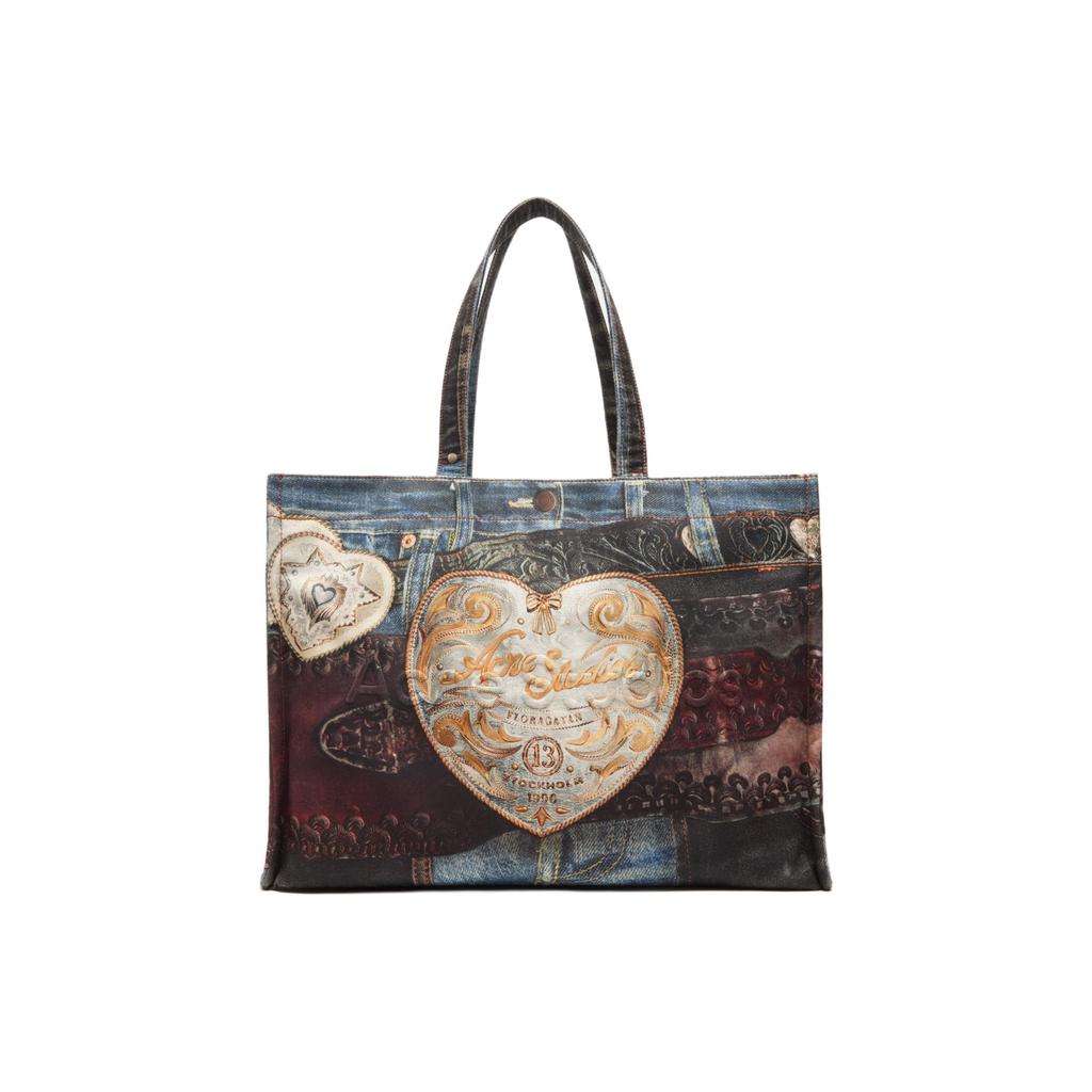 Acne Studios Optical Illusion Print Embossed Logo Cotton Tote Bag Women Tote Bags C10244-AIL