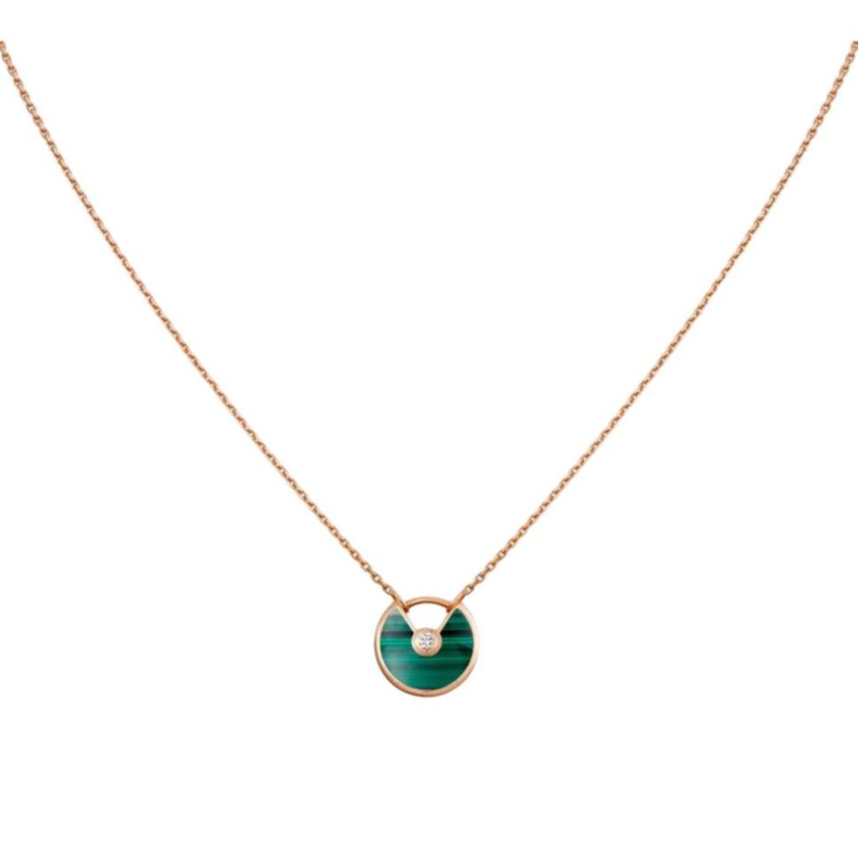 Cartier Amulette De Lock Charm 18K Gold Malachite Diamond Necklace Unisex Necklace Rose-Gold B7224550