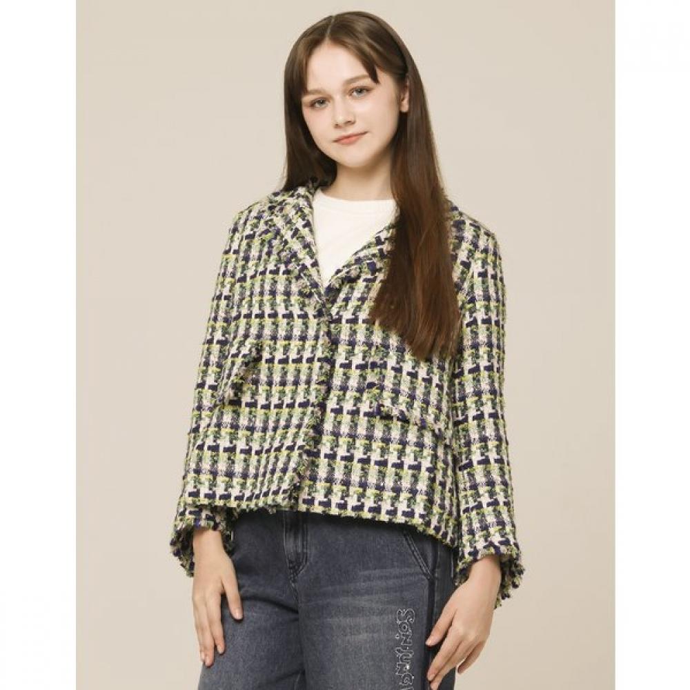 The Cut-off Tweed Jacket ZJK6161010 is a jacket featuring classic tweed material with cut-off details. The tweed texture stands out, and the edge finishing provides a natural point of interest. The sturdy fabric ensures a stable silhouette, gracefully shaping the body. It pairs well with various innerwear and can be used for both daily and formal styling.