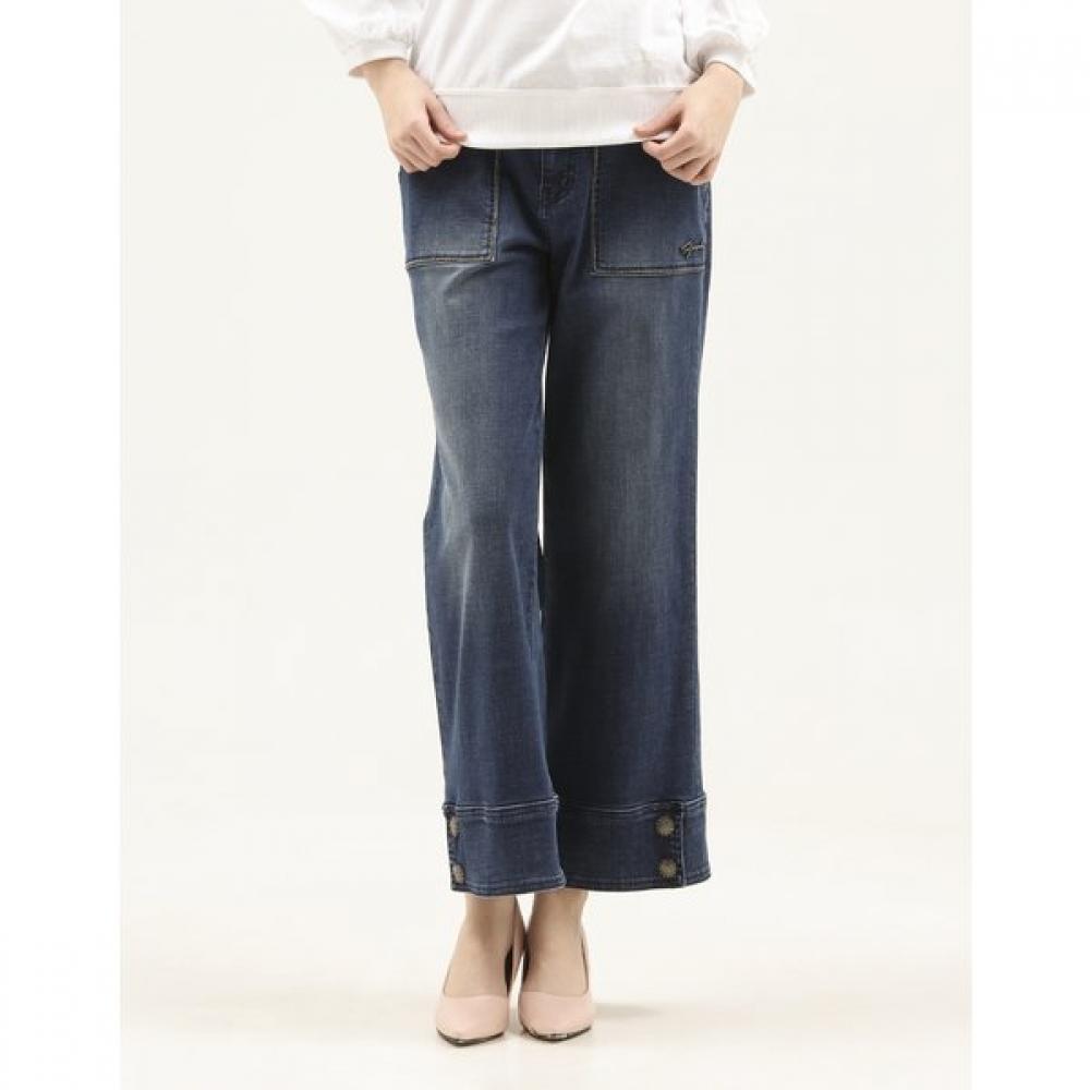 The Hem Button Wide Denim Pants feature a unique design with button embellishments at the hem, adding a point of interest. With a comfortably relaxed fit, it naturally flares downwards, creating a stunning silhouette. The side detailing gives a layered look, enhancing its sophistication. Generous front pockets enhance practicality, and the overall wash contributes to a natural vibe. This is an item that can be conveniently utilized in everyday life.
