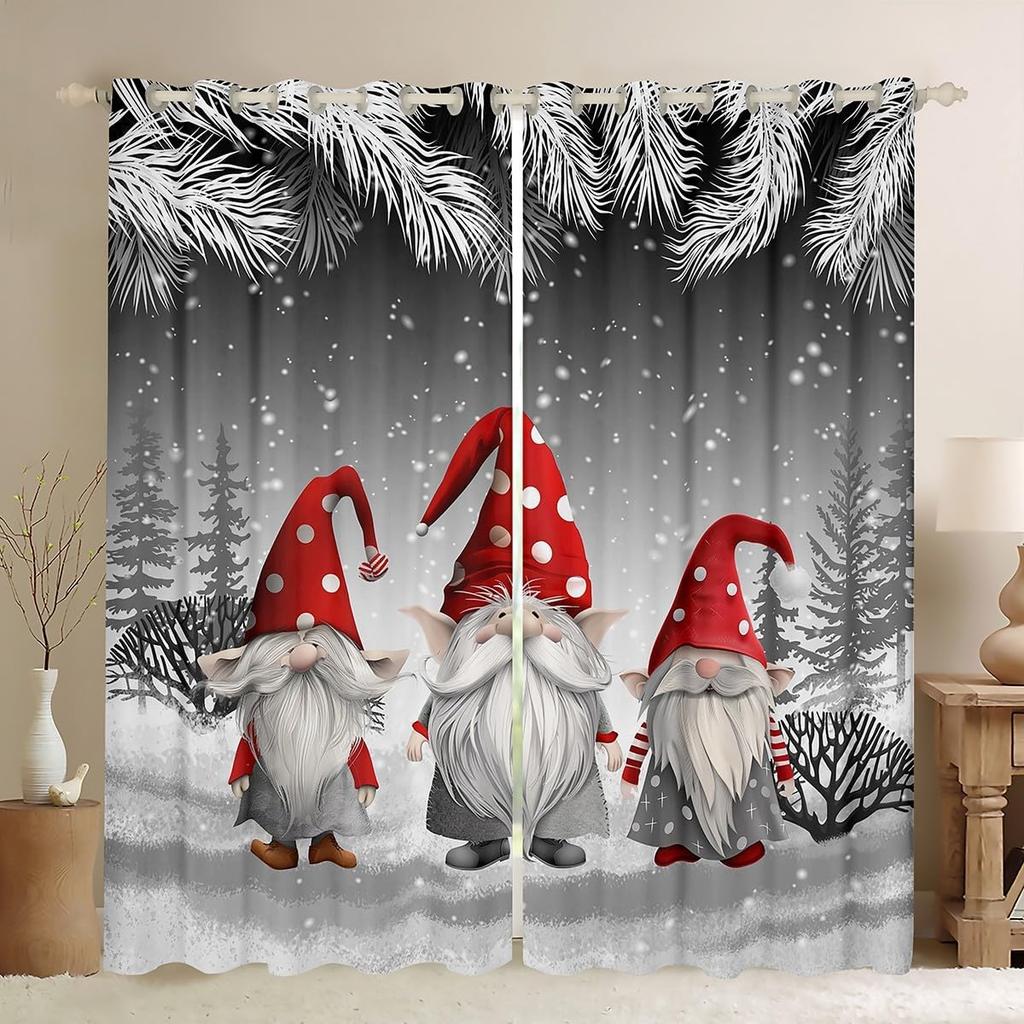 Christmas Gnome Curtain Winter Xmas Theme Window Curtains Snowflake Happy New Year Holiday Room Decor Panels Light Blocking Made Of Polyester