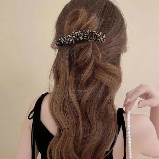 Retro Style Hairpin Stable Non-Slip Banana Clip with Pleated Fabric Wrap Leopard Plaid