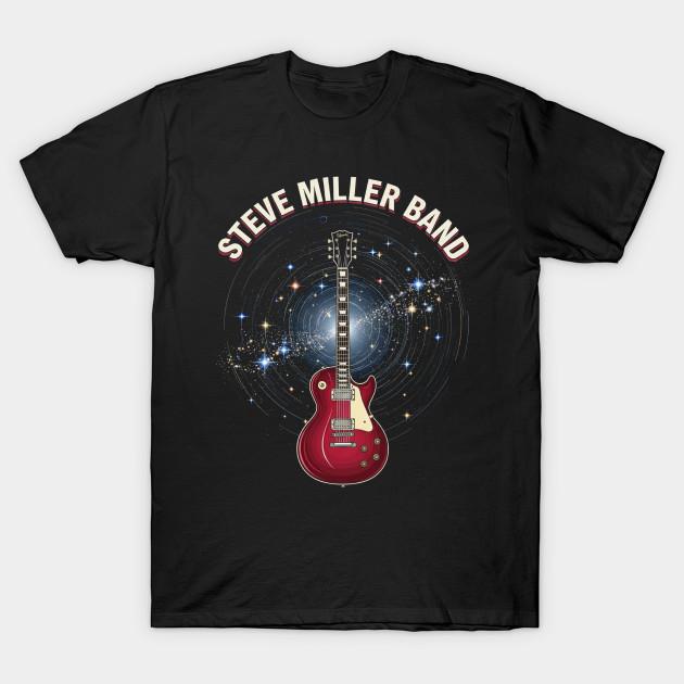 Men Black Print T-shirt Steve Miller Band Guitar No-Cut Transfer Paper Print Cotton Tshirt