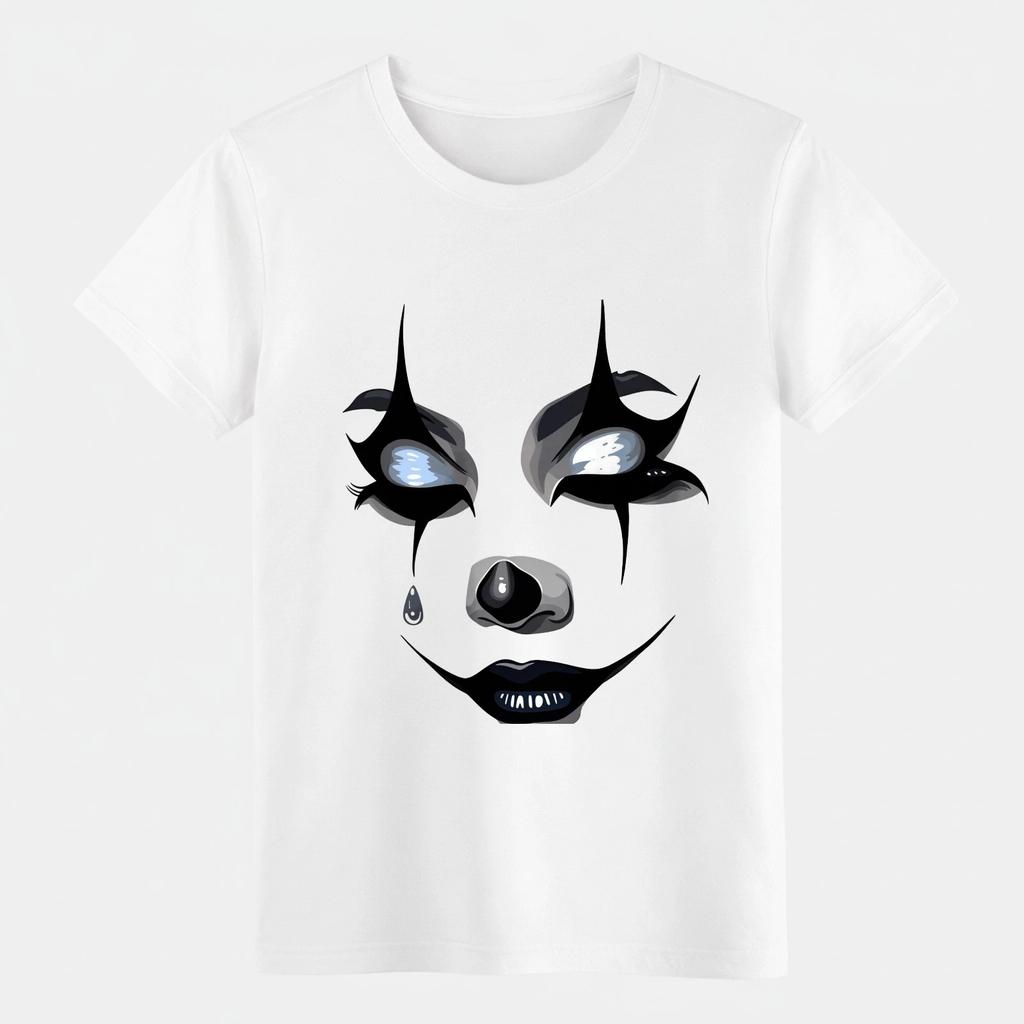Unisex Creepy Clown Face T-Shirt Gothic Horror Spooky Clown Graphic Casual Tee