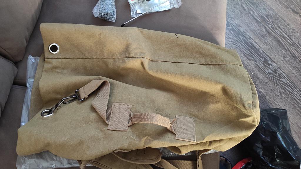 Tutto ottimo, la taglia corrisponde, non ci sono lamentele. Il materiale è di buona qualità. Per i bagagli, è perfetto. Sia la taglia che non dispiace maltrattare. Raccomando.