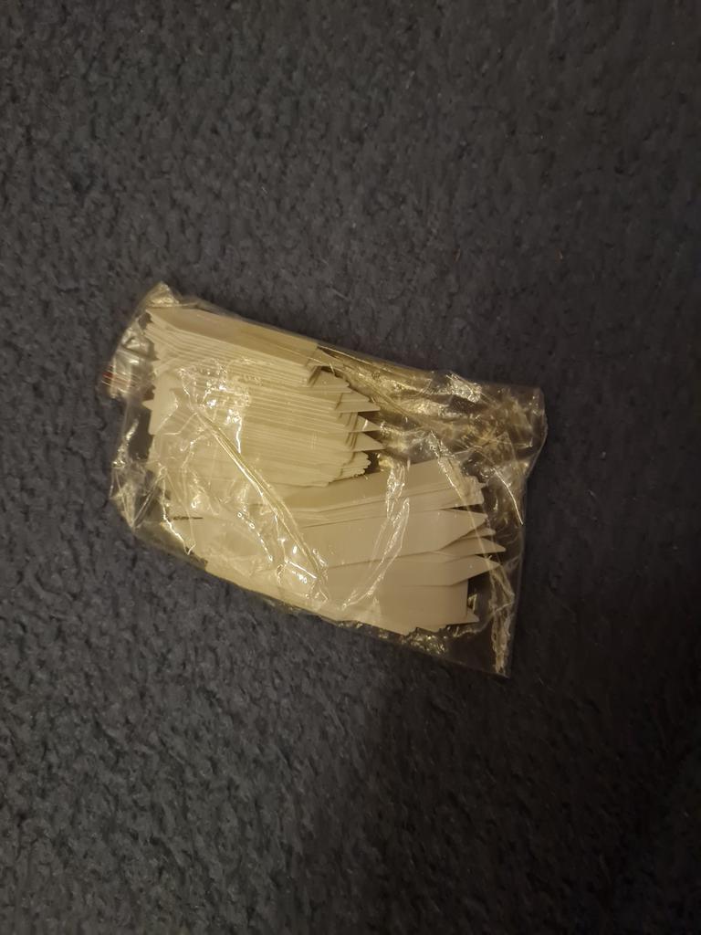 100 piccoli segni su cui annoterò cosa ho seminato dove in quali vasi, poi andiamo in battaglia e prendiamo nuove piante - allevamento per quest'anno