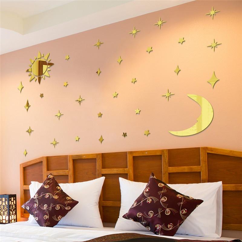 Sun Moon Stars DIY Acrylic Mirror Wall Stickers 3D Wall Stickers For Kids Rooms Decor