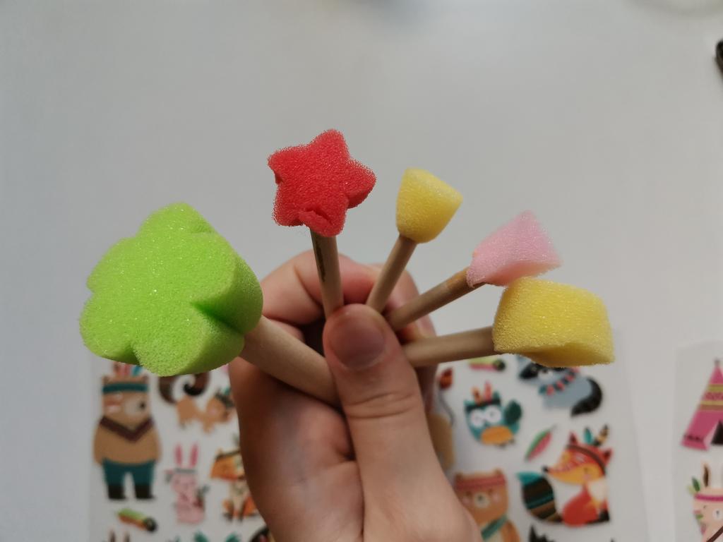 OUGEYA 5 pennelli per pittura in spugna di legno, strumenti per graffiti fai-da-te, giocattoli educativi per bambini